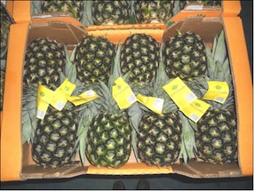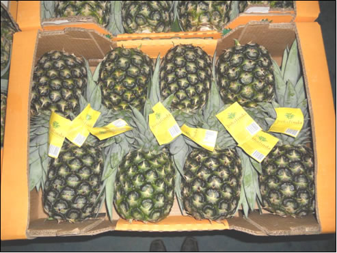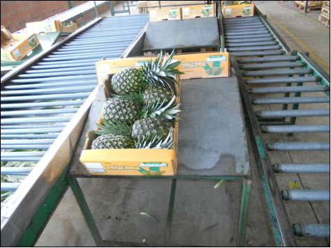 Luego de haber cumplido a cabalidad las primeras etapas del proceso, completamos nuestra labor con un minucioso y excelente empaque y paletizado de las cajas de piña.
